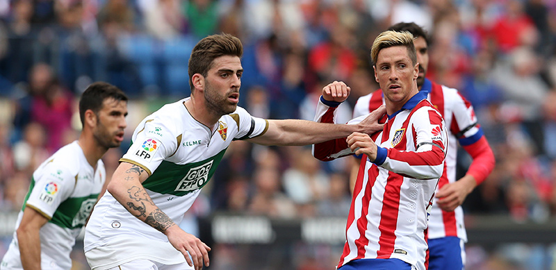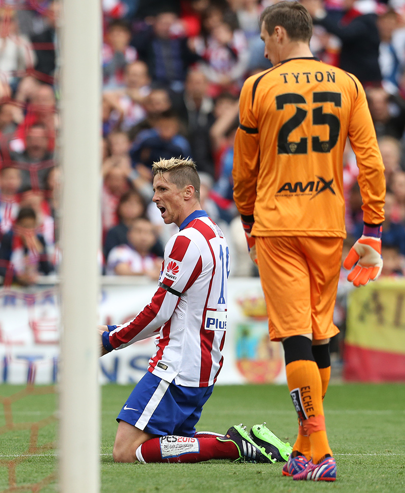 Fernando Torres formó en el once inicial dando lugar a su aparición número 700 como profesional. El destino ha querido que sucediera en el mismo estadio y con la misma camiseta con la que debutara un 27 de mayo de 2001 ante el Leganés. Igual que en aquella ocasión, ganó el Atlético, e igual que en aquella ocasión el gol le esquivó. No fue por intentarlo hasta la extenuación. De salida hizo gala de su potencia y verticalidad en una acción que desnudó a la defensa a pase de Koke. Continuó dibujando inteligentes movimientos en la zona de vanguardia que abrían espacios para Griezmann y Raúl García en la compacta defensa ilicitana, bien posicionada y expeditiva al corte. Antes del descanso protagonizó ocasiones con la derecha y de cabeza, provocando también una amarilla para Cisma. el segundo tiempo trajo de nuevo oportunidades de relevancia para el ‘19’, que vio cómo Tyton desbarataba un magnífico control y remate en carrera. Fernando disputó los 90 minutos de su partido 700, la tercera vez que juega un choque completo de los 22 diputados desde que regresara el pasado mes de enero a filas Atléticas.