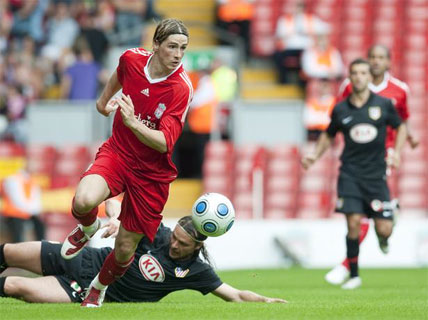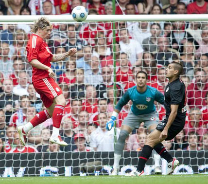 La guerra particular del ‘9’ continuó con un espléndido remate de cabeza a pase de Benayoun que una vez más murió en las manos de Asenjo. El meta rojiblanco fue la gran pesadilla para Torres, que se topó de nuevo con un despeje de puños ante su disparo con la diestra. Fue la última acción del ‘9’ antes de abandonar el terreno de juego bajo la ovación de sus dos aficiones más queridas, siendo sustituido por el francés David Ngog. En el tramo final el Liverpool apretó mucho y consiguió penetrar en las filas rojiblancas, hasta entonces impasibles, y consiguió recortar diferencias con un gol de Leiva. Gerrard asistió al brasileño y éste resolvió por bajo ante Asenjo en el uno contra uno, parco premio de consolación para un Liverpool que se estrena en la Premier League el próximo fin de semana tras una pretemporada de grises resultados.