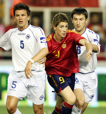 El España-Bosnia que abrió el Grupo 5 fue el primer partido oficial con Vicente del Bosque al mando y se saldó con una victoria por 1-0 en Murcia con gol de Villa. La ‘roja’ sufrió hasta el minuto 57’ para doblegar al combinado balcánico, aunque después mereció un resultado más abultado que no se consumó. Fernando Torres no participó en aquél partido, dado que fue baja para la concentración de la ‘roja’ por una lesión muscular en el muslo de la pierna derecha.