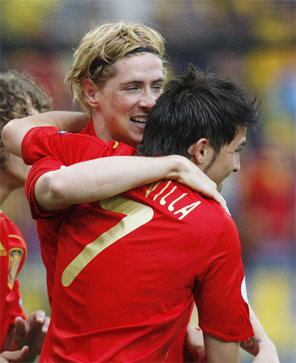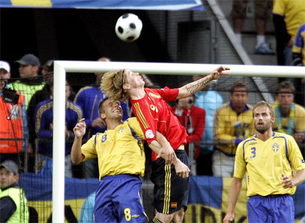 Suecia cumplió con las previsiones, aguantando con orden y poderío físico el empuje de España, pero el empate de Ibrahimovic no sirvió para anular los goles de la pareja española de moda: Fernando Torres y Villa. Con este triunfo España se aúpa con seis puntos al liderato en solitario del Grupo D.