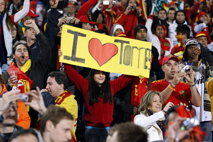 The Loftus Versfeld Stadium. Spain and Chile are fighting for the right to top Group H. The fans cheer on their respective sides, but amongst the packed stands there is one player who is the centre of attention…Fernando Torres. There were messages of support, banners and posters of the Spain and Liverpool hit-man across the stadium, as fans from around the world cheered on their idol.