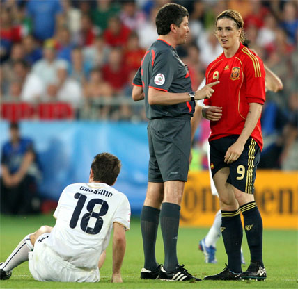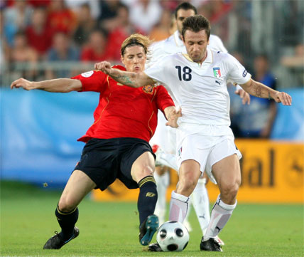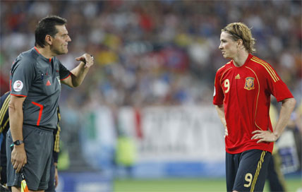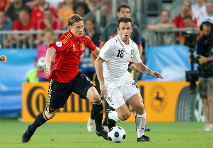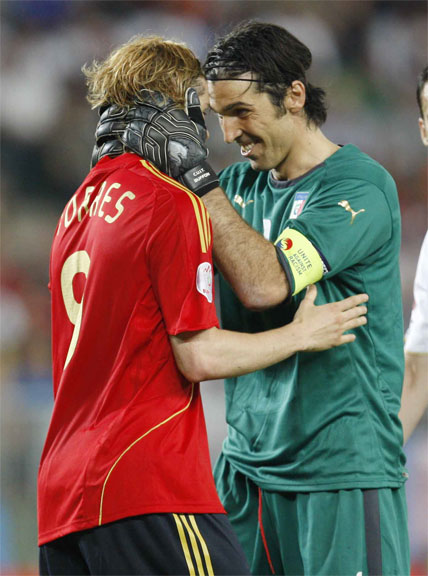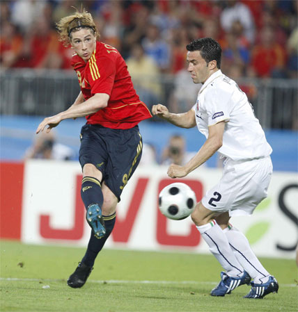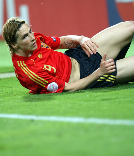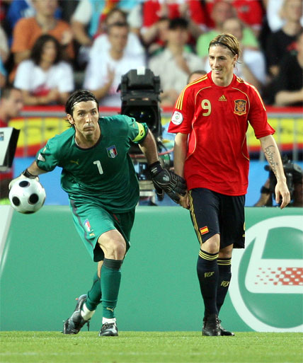 Tocó tarde de trabajo sin recompensa anotadora para Fernando Torres. Estuvo extremadamente activo, bajando a apoyar en la construcción y haciendo gala de un juego de movilidad total en combinación con Villa y muy vigilado por la zaga italiana. Buscando las bandas y ejerciendo de punta o asistente. El ‘9’ de España no escatimó esfuerzos en sprints y carreras por banda: según la estadística 8,58 kilómetros llevaba recorridos cuando fue sustituido por Dani Güiza a seis minutos para el final de la segunda parte.