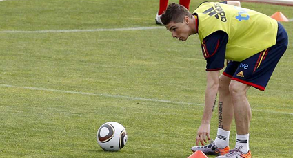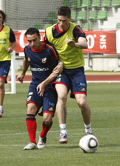 A las 10,30 de la mañana Torres saltó al terreno de juego junto a los otros 22 internacionales. Allí el '9' tocó balón y disputó un partidillo de entrenamiento que duró unos 30 minutos. Fernando formó junto a Villa, Mata, Javi Martínez, Iniesta, Silva, Albiol, Puyol, Arbeloa y Marchena. Concluido el choque, se retiró 25 minutos antes que el grueso del grupo.