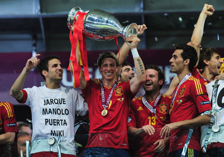 Sensational Spain marched straight into the history books with a magnificent 4-0 UEFA EURO 2012 final victory over Italy in Kiev. First-half goals from David Silva and Jordi Alba and late efforts from Fernando Torres and Juan Mata confirmed La Roja as the first team to record three successive major tournament victories, including a World Cup, with the biggest ever win in a European Championship final.
