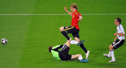 It took Torres 33 minutes to find the net when he expertly lifted a Xavi pass over Germany's Jens Lehmann.