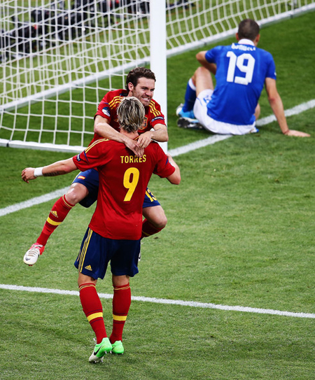 After living Champions League glory in May with Blues Fernando Torres made the trip to Poland-Ukraine Euro challenge to defend the crown won back in 2008 with Spain. Not only La Roja hit the target winning Italy by storm (4-0) so Torres got a place in football history being the one and only player to score in two consecutive finals of the Tournament winning both of them. Silva and Jordi Alba made the first and second blood in Kiev but Torres came onto the pitch to score a third a give Mata the assist for the last goal.