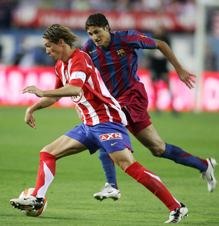 Torres ha protagonizado crudos duelos con Puyol, que ha comprobado en varias ocasiones la dificultad de marcar a su compañero de la Selección española. En la campaña 2002-03 anotó su primer gol al Barça. En el Calderón todavía recuerdan aquella vez en la que un chaval de la cantera se fue de De Boer a base de coraje y coló el cuero con astucia entre el poste y Bonano, o la otra en la que el mismo joven dejó atrás a Puyol con un cabezazo en carrera para luego batir a Víctor Valdés por alto.