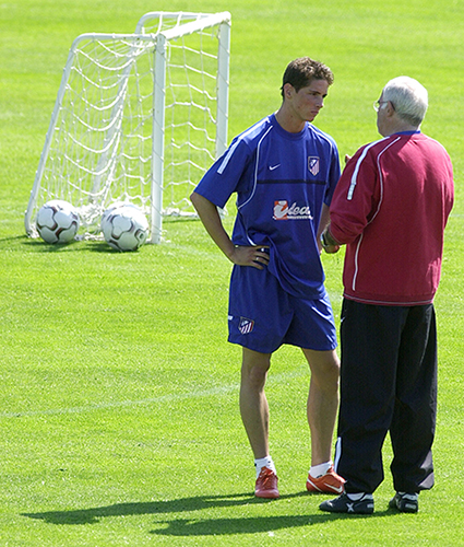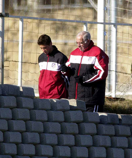 Torres y Luis Aragonés charlan en una sesión de entrenamiento en el Cerro del Espino, Majadahonda (15-12-2001) Foto: J.A. Sirvent