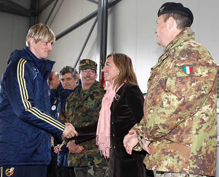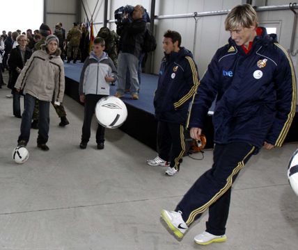 La primera cita de la Selección en tierras bosnias estaba reservada para los soldados españoles integrados en las tropas EUFOR, desplazados en misión de paz. Los internacionales departieron con los militares en un encuentro muy agradable al que no faltó el balón: Fernando Torres y Pepe Reina participaron en un ‘mini-rondo’ con los niños allí presentes. Presidieron el acto la Ministra de Defensa, Carme Chacón y el Presidente de la RFEF, Ángel María Villar.