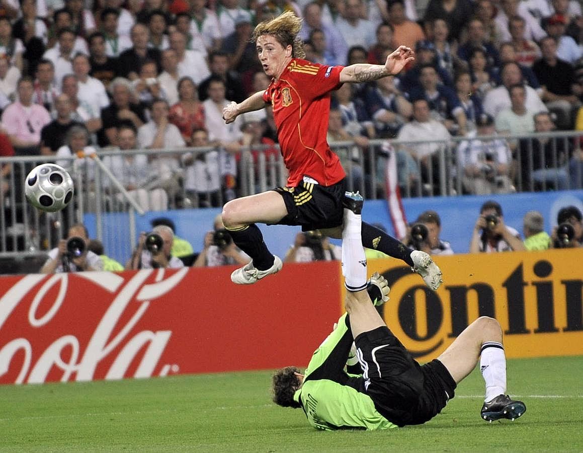 Una vez superada Rusia en las semifinales, Alemania fue el rival en la final. Una de las grandes selecciones de la historia por títulos. Antes de saltar al césped del estadio Ernst Happel, Luis Aragonés me dijo que marcaría dos goles. Casi acertó. Xavi me sirvió un balón en profundidad, el defensa se confió y tuve el tiempo justo para picarla ante la salida del portero. El balón resbaló sobre el césped y la explosión de alegría se convirtió en increíble. Después los minutos se hicieron interminables, hasta el final del partido todo podía ocurrir, pero cuando el árbitro pitó toda esa tensión se transformó en una inmensa sensación de satisfacción y orgullo… ¡somos campeones!