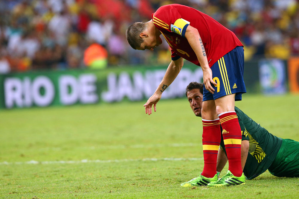Tuve la oportunidad de ser titular en el once de la Selección ante Tahití y logramos una victoria muy amplia, por 10-0, frente a un rival muy digno, que dio la cara y quiso jugar al fútbol por encima de todo, sin pensar en las consecuencias. Conseguí anotar cuatro de estos diez goles, mi primer ‘cuarteto’ como profesional y sin duda un gran recuerdo de mi primer partido en un estadio eterno. Además estos cuatro tantos me ayudaron a conseguir la Bota de Oro del torneo, aunque en la final nos ganó Brasil, también en Maracaná. No hubo felicidad completa como en la final de la Eurocopa 2012 en Kiev.