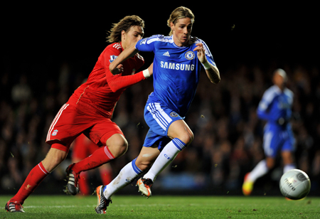 Fernando Torres regresó al once titular para liderar la línea atacante de tres junto a Lukaku y Malouda y jugó completa la eliminatoria. Desde el inicio se vio envuelto en un trabajo de brega con la defensa de los ‘reds’, moviéndose por todo el frente de ataque buscando vías para llegar a puerta. Siempre ultra-vigilado y sin espacios, recibía el balón de espaldas a la portería con pocas opciones de superar a sus marcadores. Aún así forzó una tarjeta amarilla para Sebastián Coates, de la que nació la ocasión más clara que el Liverpool sacó bajo palos a remate de David Luiz, e hizo emplearse a fondo a Pepe Reina en un cabezazo a saque de esquina que bien pudo recortar diferencias.