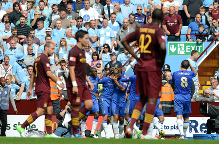 Ten-man Chelsea surrendered a first-half lead at Villa Park, ensuring defeat in our first competitive outing of the season. Fernando Torres put Blues in front five minutes before half-time only for Branislav Ivanovic to be almost instantly dismissed for a late tackle, meaning an uphill battle in the second half.