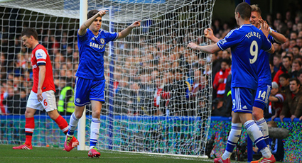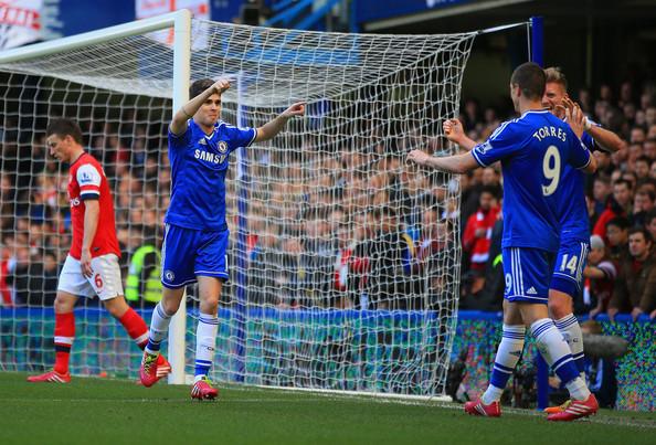 The lead was doubled by half-time with substitute Fernando Torres involved in both goals, Eden Hazard slotting a penalty won through a centre from the Spaniard and Oscar netting a superb assist by Fernando, the first of those also resulting in an Arsenal red card, Kieran Gibbs erroneously sent-off when Oxlade-Chamberlain should have walked.