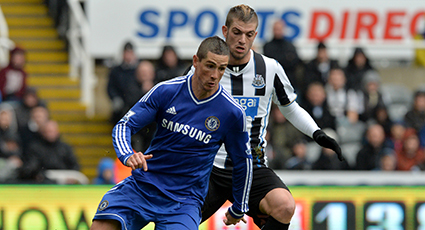 As the half entered its final 10 minutes, the industry of Torres and then Oscar won two corners in quick succession. The second was headed down and on-target by Terry but Santon stopped to clear it off the line. Newcastle broke up the other end but Sissoko's shot which skidded along the wet turf was pouched by Cech.