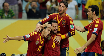 Spain: Casillas; Arbeloa, Piqué, Sergio Ramos, Jordi Alba; Busquets, Xavi (Javi Martínez 76’), Iniesta; Pedro (Mata 80’), Cesc (Cazorla 64’) y Soldado.
