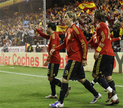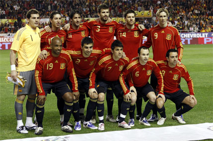 España: Casillas (Reina 46’), Ramos, Albiol (Marchena 74’), Piqué, Capdevila (Arbeloa 46’), Senna, Xabi Alonso, Xavi (Güiza 84’), Iniesta; Torres (Llorente 63’) y Villa (Silva 56’).