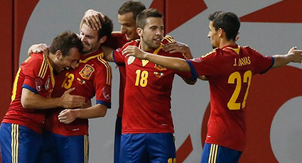 ESPAÑA: Valdés (Casillas, min.59); Arbeloa, Piqué, Ramos, Arbeloa; Busquets, Xavi (Mata, min.70), Iniesta (Fábregas, min.59), Silva (Navas, min.46), Pedro (Cazorla, min.80) y Villa (Soldado, min.59).