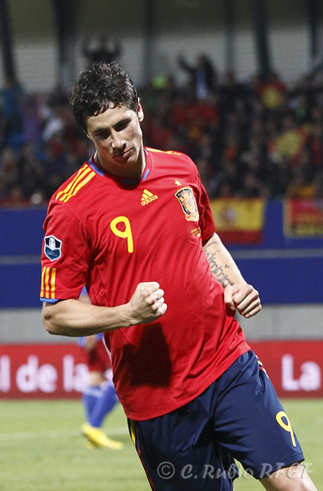 Torres, con el 14, en una de sus primeras apariciones con la SelecciónCon los 100 partidos Torres accede al selecto club que hasta hoy contaba con sólo cinco miembros. Iker Casillas, Andoni Zubizarreta, Xavi Hernández, Raúl González y Xabi Alonso son los jugadores que ya son centenarios. Auténticas leyendas de La Roja a las que Fernando se suma a los 28 años y con muchos más de fútbol por delante. En estos 100 partidos ha conseguido 31 goles que han servido para alcanzar metas hasta hace bien poco muy esquivas a pesar de las grandes generaciones de futbolistas que han defendido los colores de la Selección.