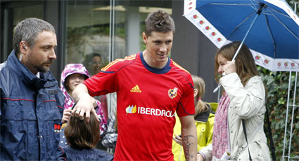 Jornada de sesión única y vespertina de entrenamiento para echar el cierre a la concentración en el valle alpino de Montafon. Por la mañana los internacionales no se calzaron las botas y disfrutaron de su tiempo libre. Fernando Torres dedicó unos minutos para fotografiarse con unos niños, que esperaban en las inmediaciones del hotel su oportunidad para retratarse con el delantero del Liverpool y la Selección española.