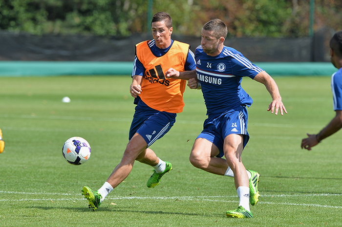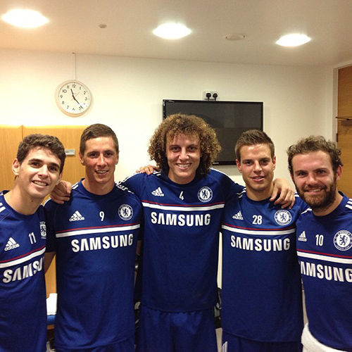 So it was this morning when Fernando Torres and the other international players Juan Mata, Cesar Azpilicueta, David Luiz, Oscar and John Mikel Obiwere reunited with their club colleagues, and it was straight into a full training session out on the sunny pitches in Surrey.