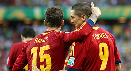 Fernando Torres was selected for the Confederations Cup dream team, after the competition drew to a close at the Maracaná Stadium. It was the second time for the striker in the ‘dream team’ of the Competition as he was too on the 2009 edition. Chelsea teammate David Luiz was chosen in the tournament's top eleven players by viewers of FIFA.com, as also did Sergio Ramos and Andres Iniesta from the Spanish National Team.