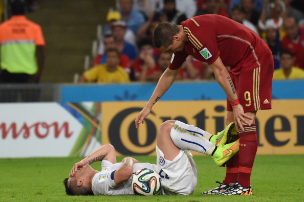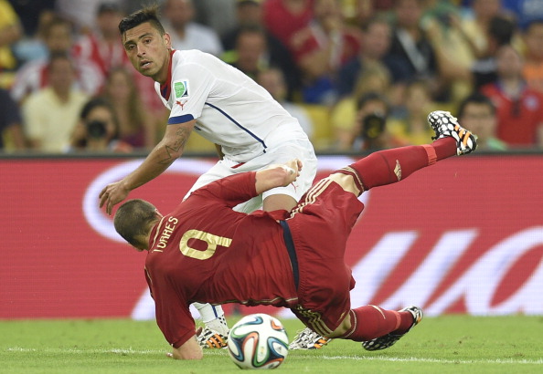 Not long after Xabi Alonso had a close-range shot saved Chile took the lead. It was Alonso that had the ball pinched off him in midfield and as Chile swept forward Charles Aranguiz cleverly teed up Eduardo Vargas who rounded Iker Casillas and slotted home. Nineteen minutes had been played.