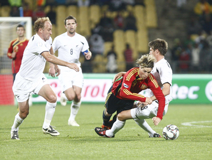 Spain took the lead on six minutes when Fernando Torres received a pass from Cesc on the edge of the area before placing the ball beyond Moss’ desperate dive. The keeper had no chance as the ball flew into the top left-hand corner.