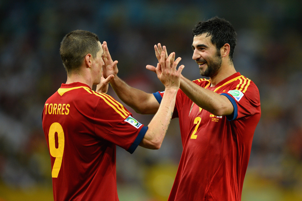 Spain: Reina; Azpilicueta, Ramos (Navas, min.46), Albiol, Monreal; Javi Martínez, Mata (Fábregas, min.69), Silva, Cazorla (Iniesta, min.77); Torres y Villa.
