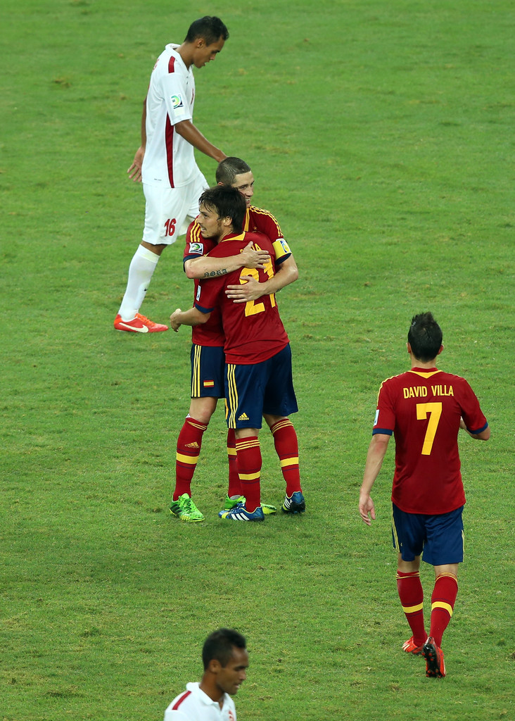 Fernando Torres fue titular y jugó los 90 minutos del choque. El ‘9’ del Chelsea exhibió un estado físico magnífico que rompió sin descanso la defensa, así como un sexto sentido de cara al gol que propició el que fue su primer cuarteto al máximo nivel. Con estos cuatro goles en su partido internacional 103, Torres aumenta su cifra de goles con la Selección a 35 tantos y presenta candidatura a Bota de Oro en la Copa Confederaciones.