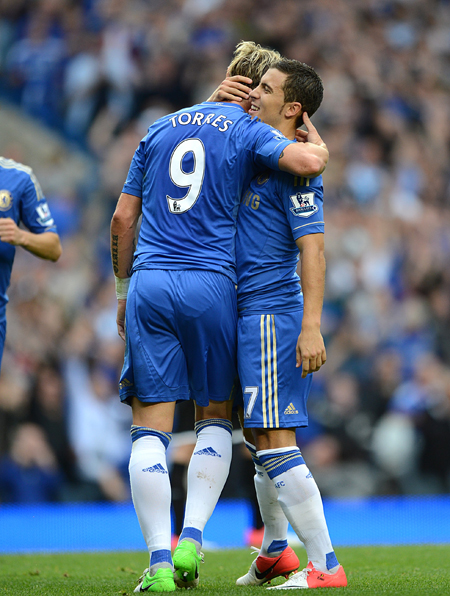 Hazard opened the scoring from the penalty spot in the 21st minute, drilling his strike beyond Tim Krul after Torres had been brought down by Vurnon Anita.