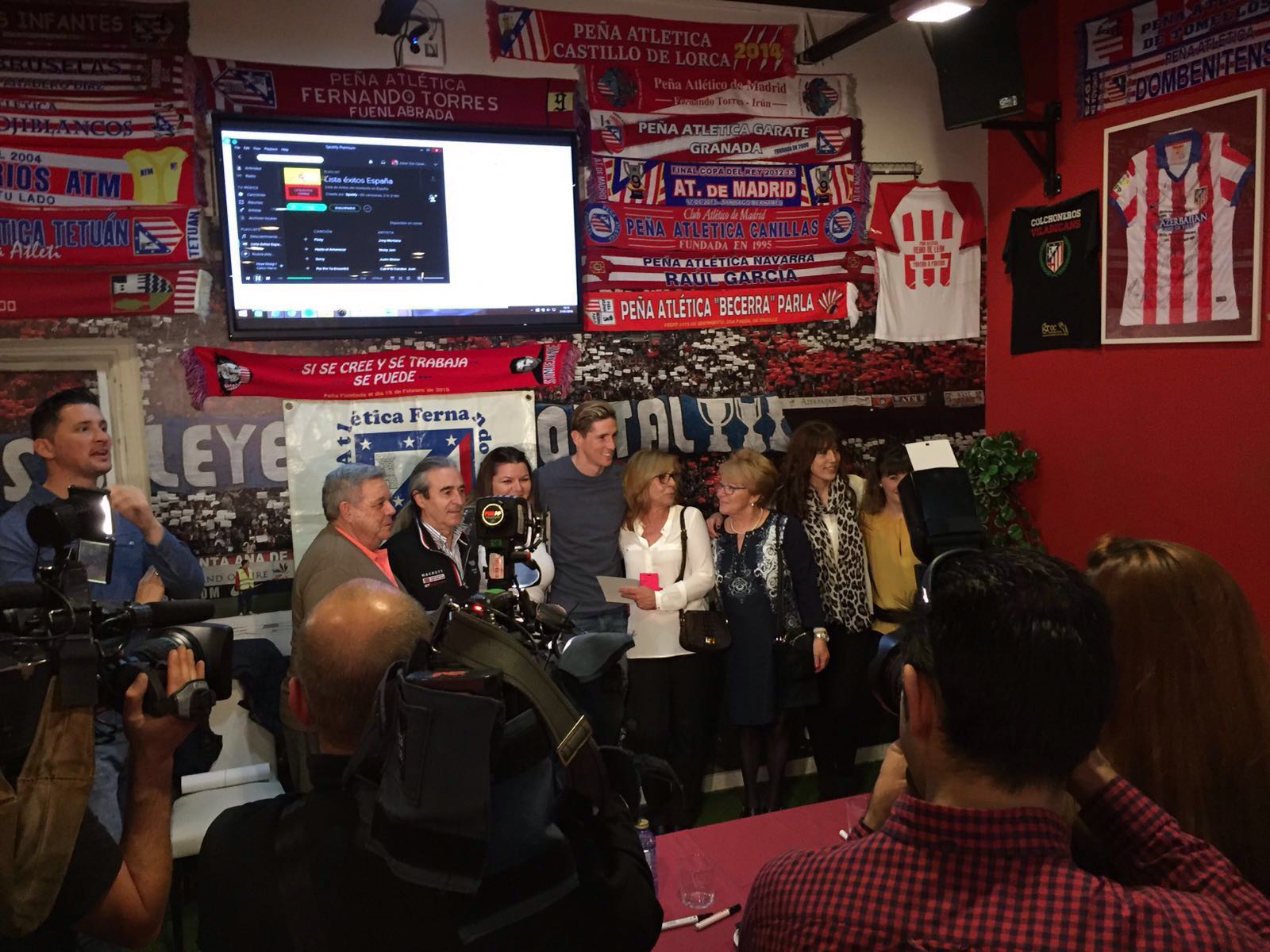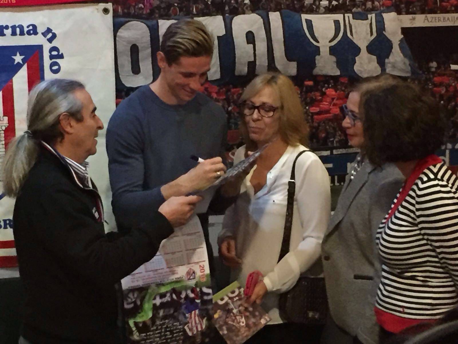 Fernando Torres acudió al Vicente Calderón a mediodía del domingo para una cita muy especial: la Peña Atlética Fernando Torres de Fuenlab