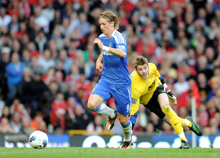 Fernando Torres formó en el once titular de Villas-Boas y jugó completo el choque. De salida compartió el tridente de ataque con Sturridge y Mata, al igual que en la victoria europea de media semana sobre el Leverkusen. Y como ante los alemanes, jugó un papel clave en el esquema del Chelsea. Con movilidad permanente, buscando apoyos y combinaciones con Sturridge y Mata, sirvió asistencias, fabricó ocasiones y anotó el único gol ‘blue’ del partido: con un toque sublime picó ante la salida de De Gea, tras servicio de Anelka al comienzo del segundo tiempo. El ‘9’ recibió el cariño de la afición desplazada a Old Traffrod, que entonó con asiduidad cánticos de apoyo al delantero madrileño.